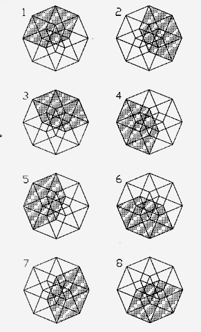 a different one of the 8 cells. Though the cells look like skewed cubes,